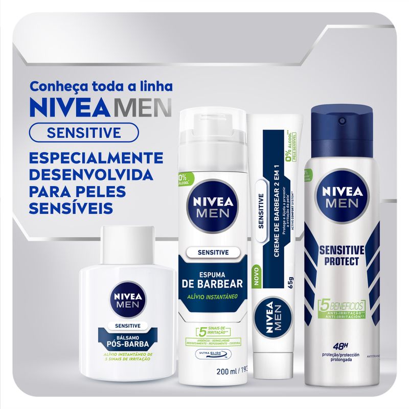 Com tecnologia hidratante especial da NIVEA, amacia o pelo da barba e ainda protege a pele, sem deixar a sensação de ardor no rosto.